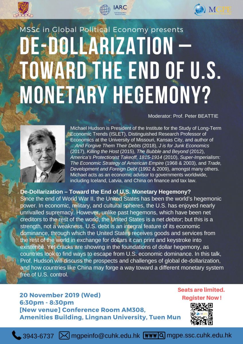 [Change of Venue] MGPE Seminar – De-Dollarization – Toward the End of U.S. Monetary Hegemony?
