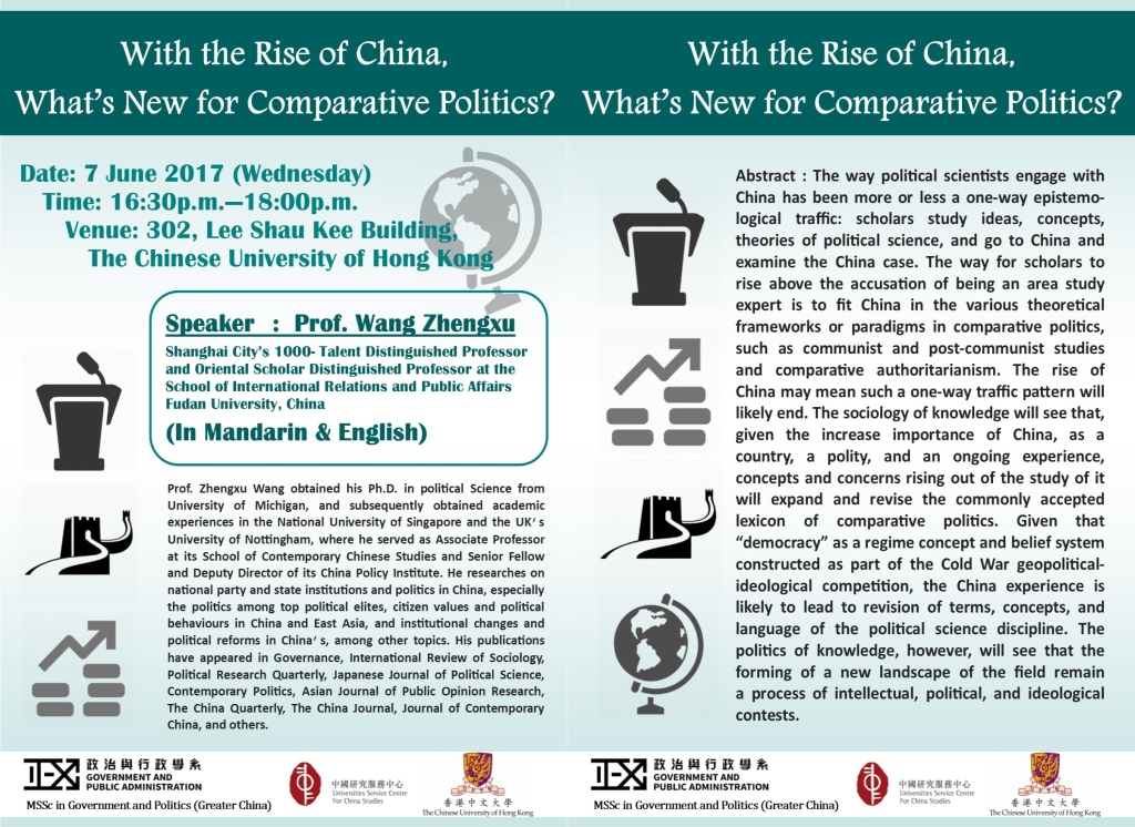 MSSc in GPGC is pleased to announce that we’ve invited Professor Wang Zhengxu from Fudan University to deliver a seminar at USC in June 7. All are welcome!