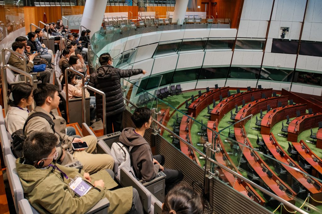 Thanks to the part-time students of GPGC and the Office of Hon Chan Chun-ying, students from GPGC and MPUP visited the Legislative Council on 17 February (Monday) under the guidance of Professor Zhan Jing. On the day of the visit, led by Hon Chan Chun-ying and the docent, the teachers and students visited the Council Chamber, the History Gallery, the Media Centre, etc., and took a group photo with Mr. Chan. During the more than one-hour activity, the docents introduced the history and current situation of the Legislative Council to the students with his rich knowledge and experience, and Mr. Chan also had a cordial exchange with the students on the daily work of the members. The visit broadened the students’ horizons and enhanced their understanding of Hong Kong’s political and social system.